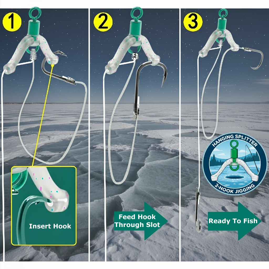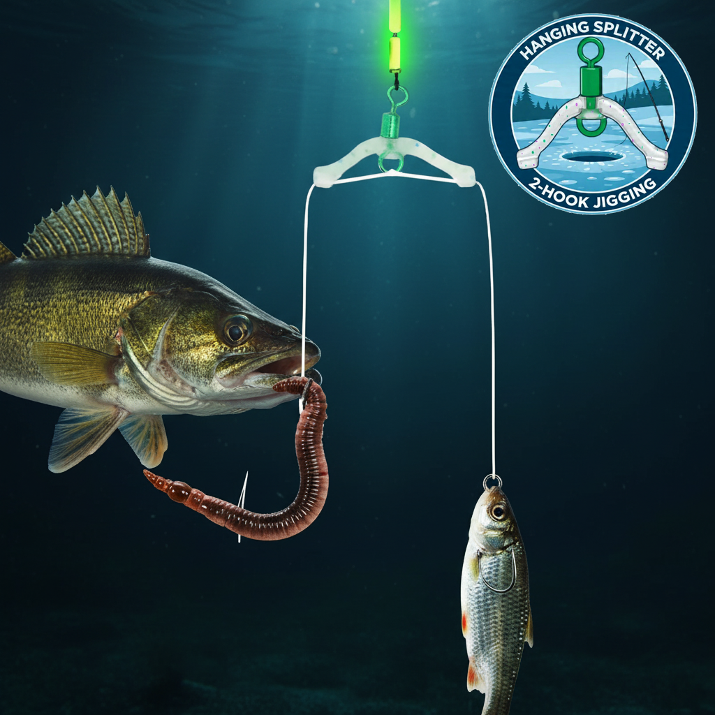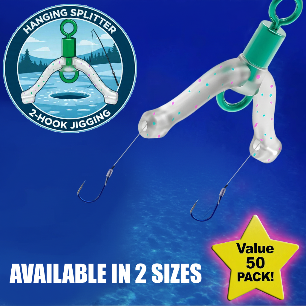 Ice Fishing Two Hook HANGING "SPLITTER" Designed For Jigging - Two Hooks, One Line, Better Odds - Value 50 Pack!